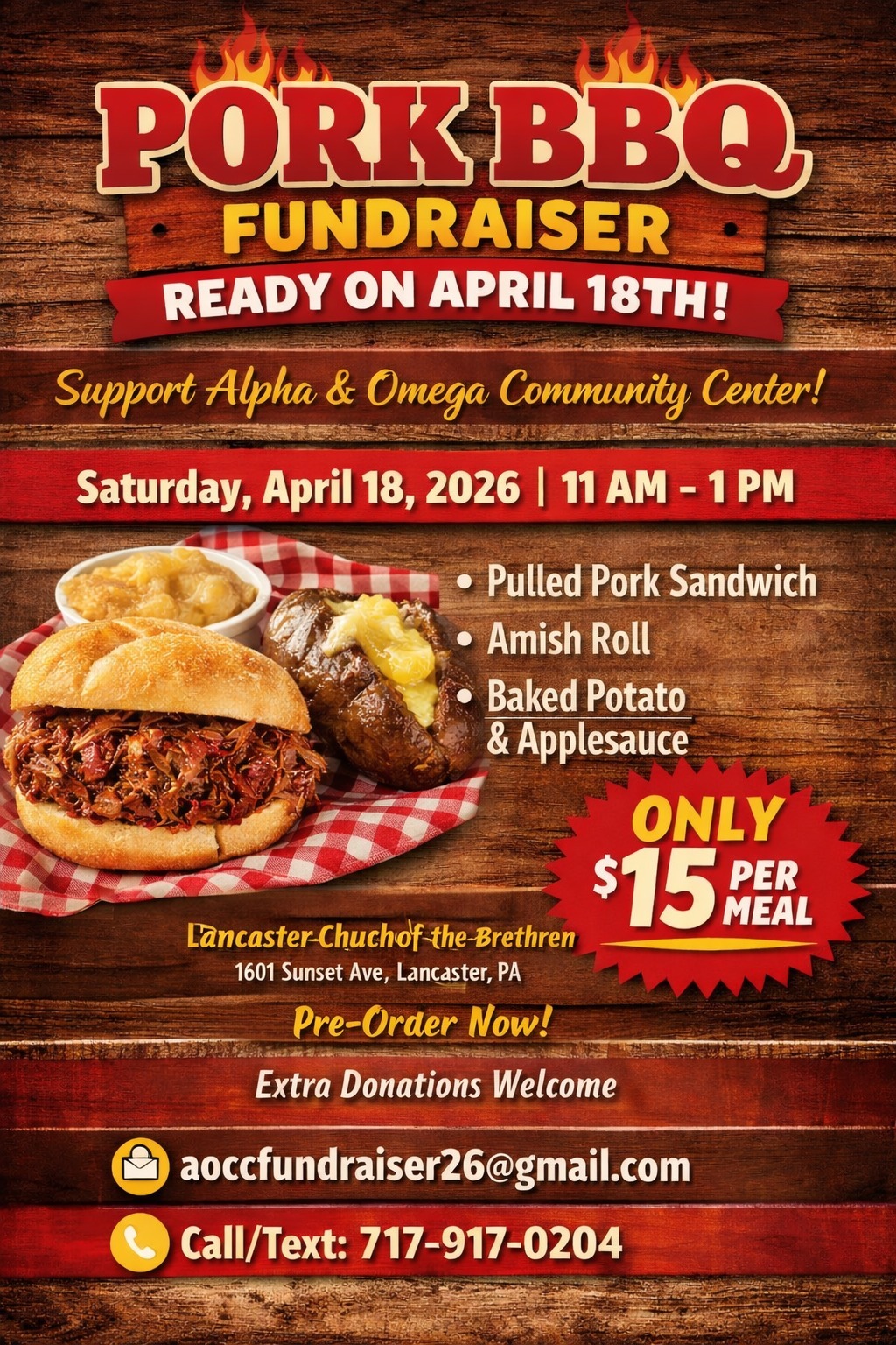 Join our Pork BBQ Fundraiser benefiting the Alpha & Omega Community Center.
